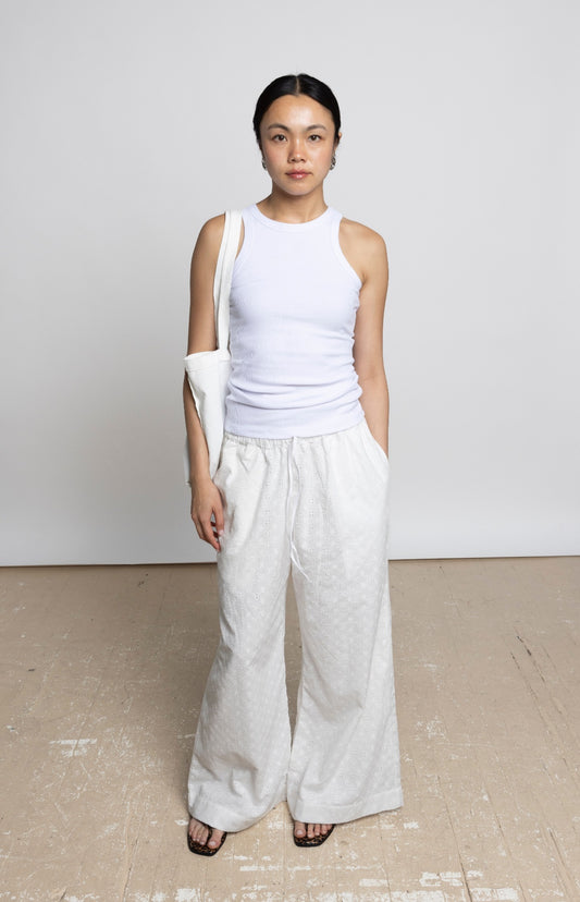 EIRA STRAIGHT FIT EMBROIDERED COTTON PANTS