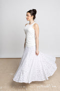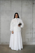 Light as air and effortlessly elegant, the Solene Skirt is a romantic white maxi crafted from a delicate cotton-lace blend and fully lined in soft 100% cotton. Featuring godet panels for added volume and graceful movement, it’s the skirt you’ll reach for all summer — timeless, breathable, and impossibly refined.