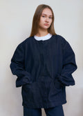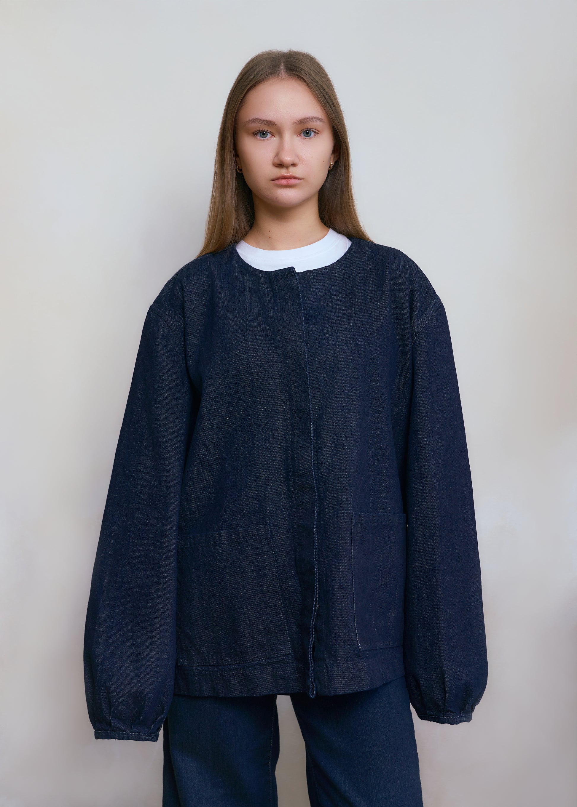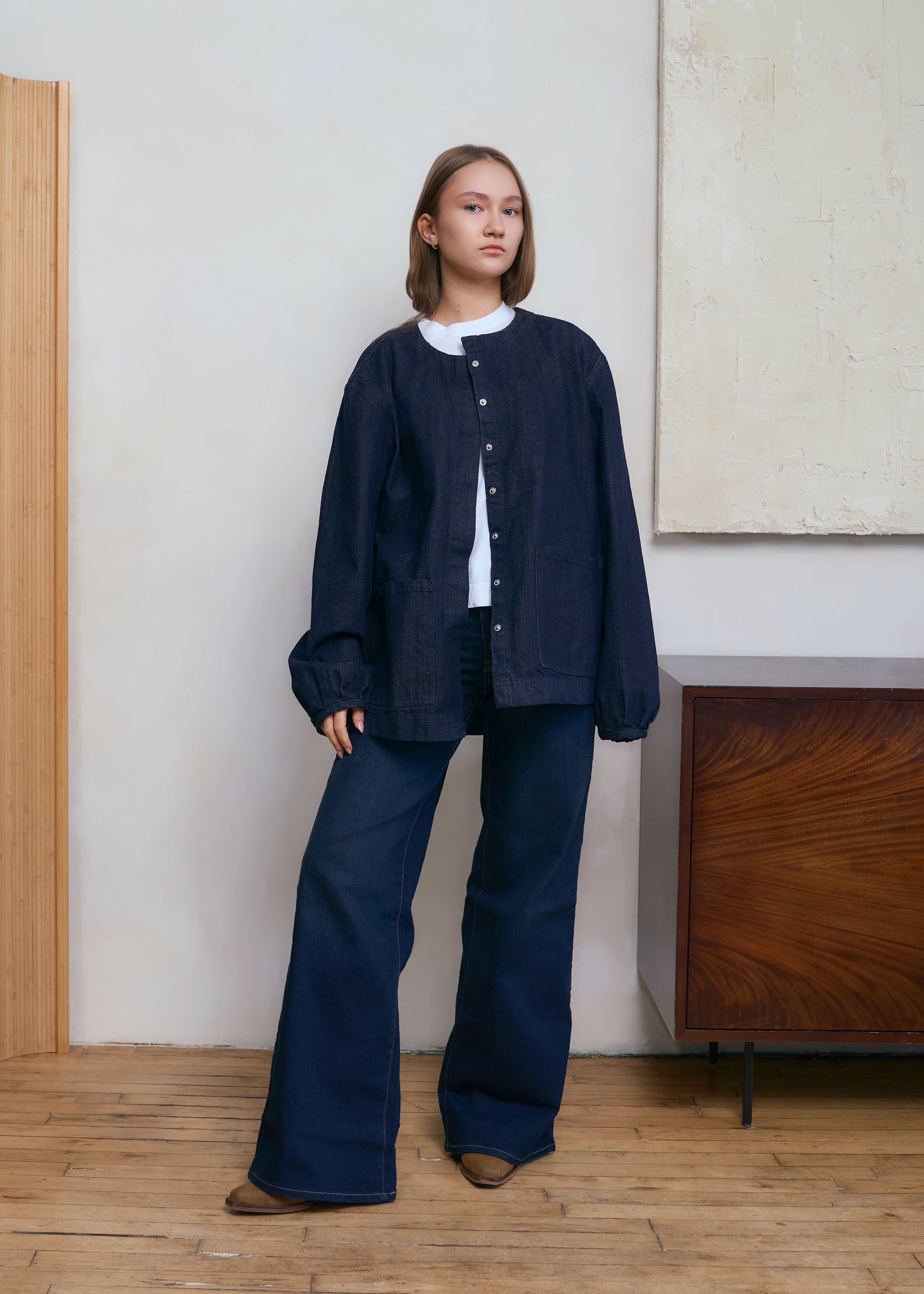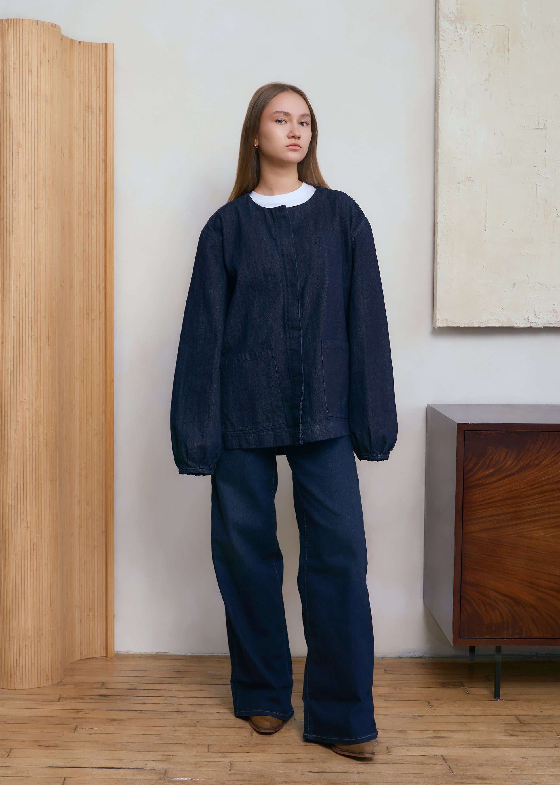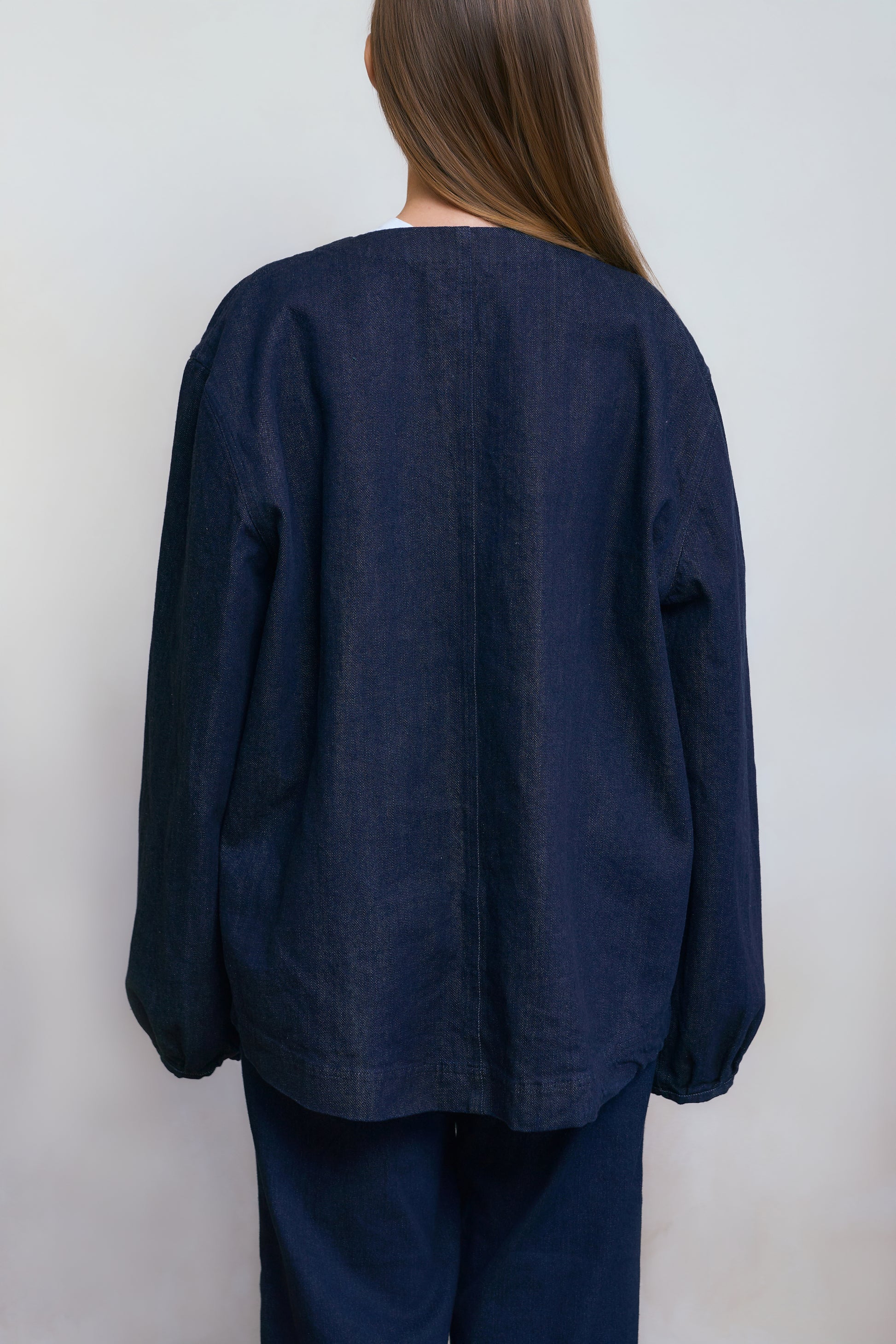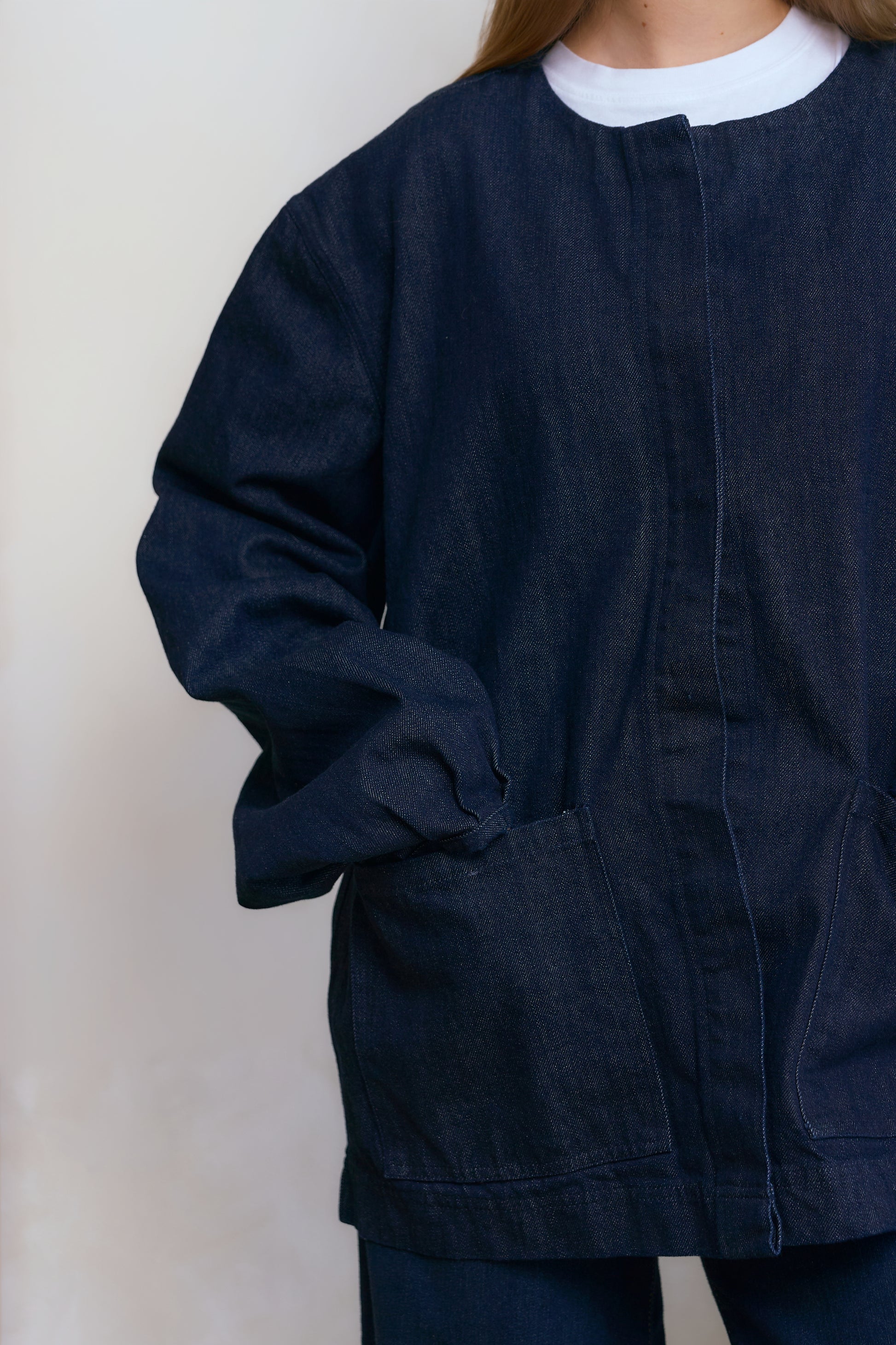Made in our Dhaka Atelier, the Haven Jacket offers a clean, relaxed silhouette in deep indigo denim with a quiet, structured elegance for everyday wear.
