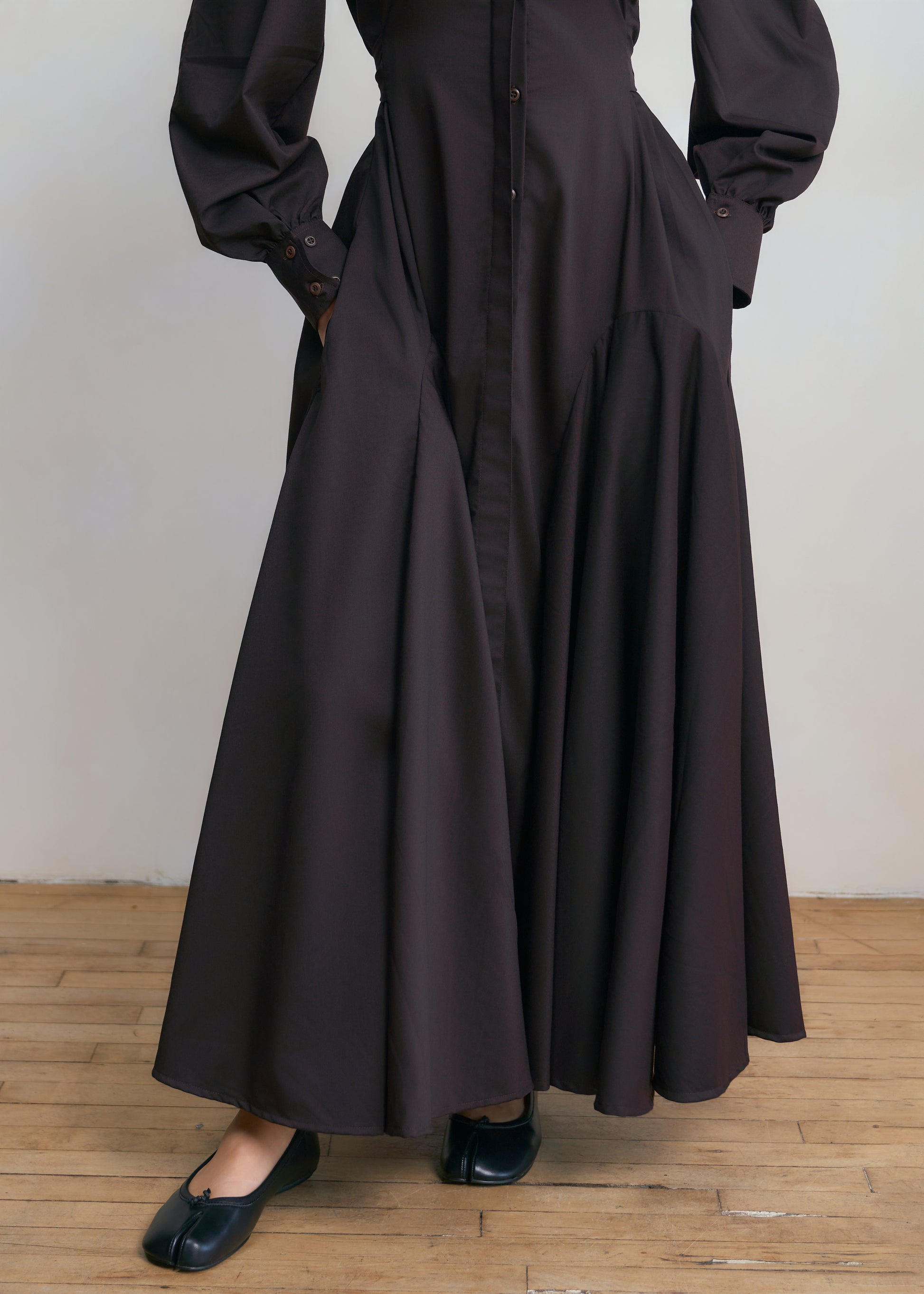 Multi-panel flared skirt for maximum drape and flow