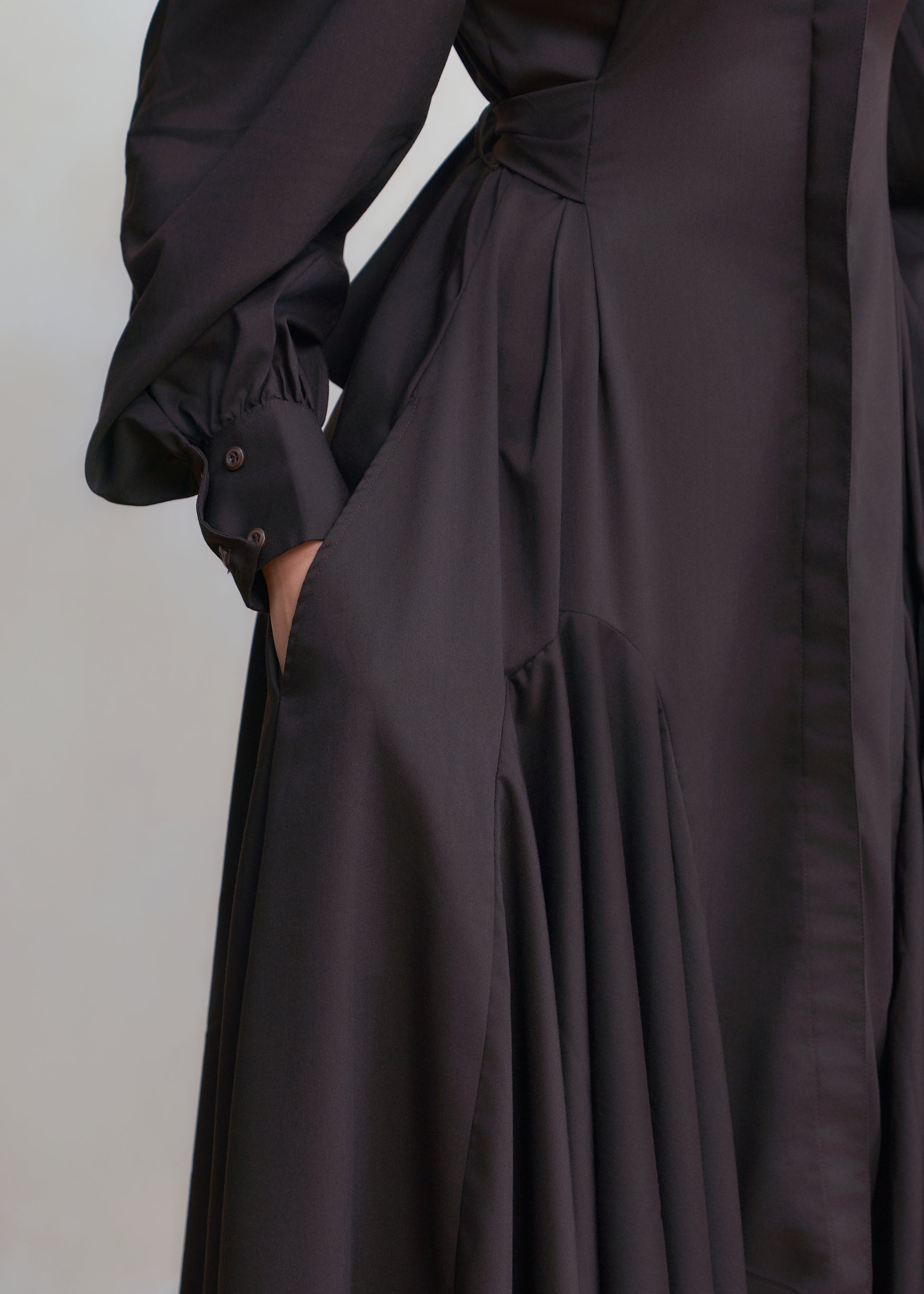 Wide cuff sleeves with tailored pleats for shape and movement