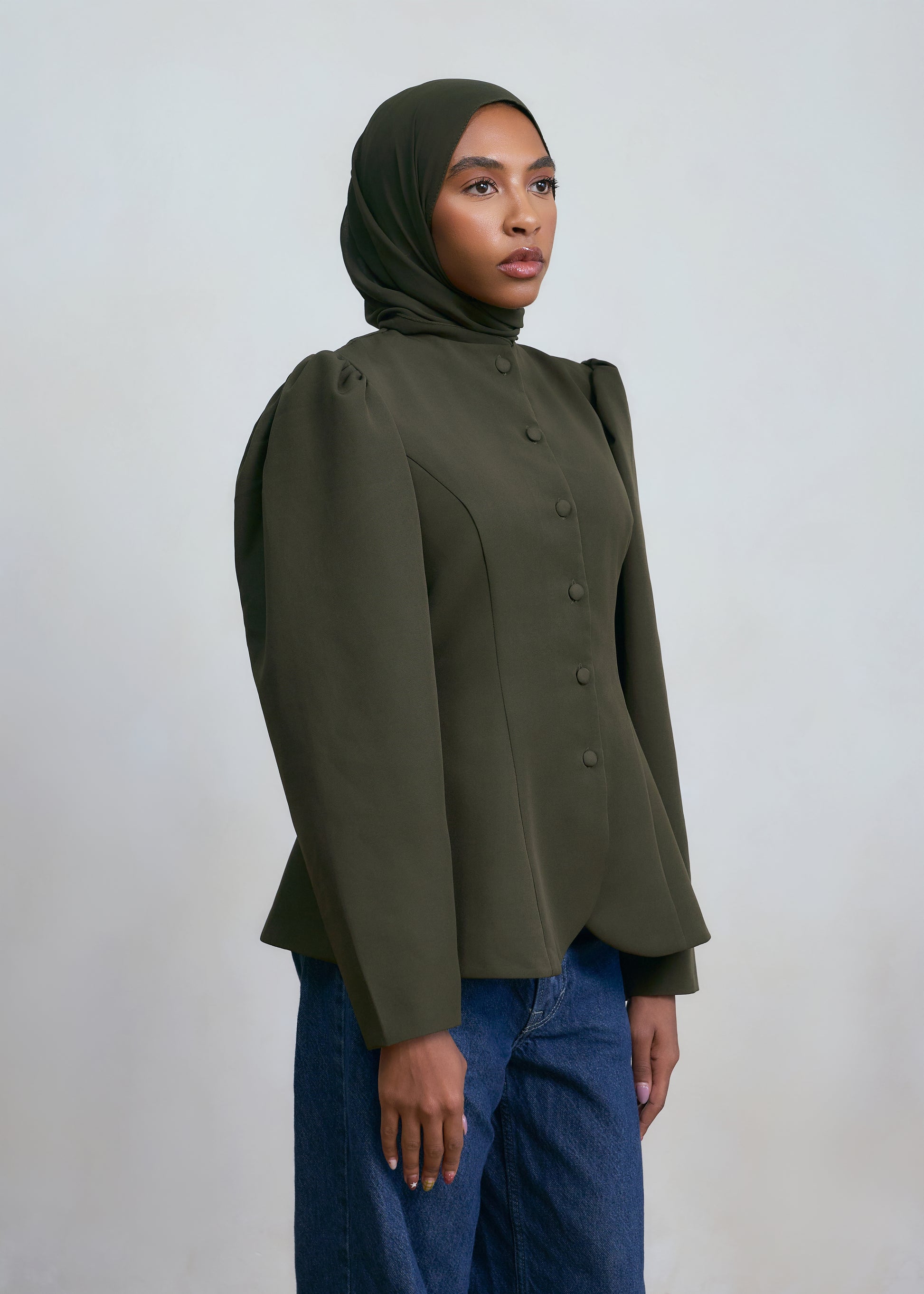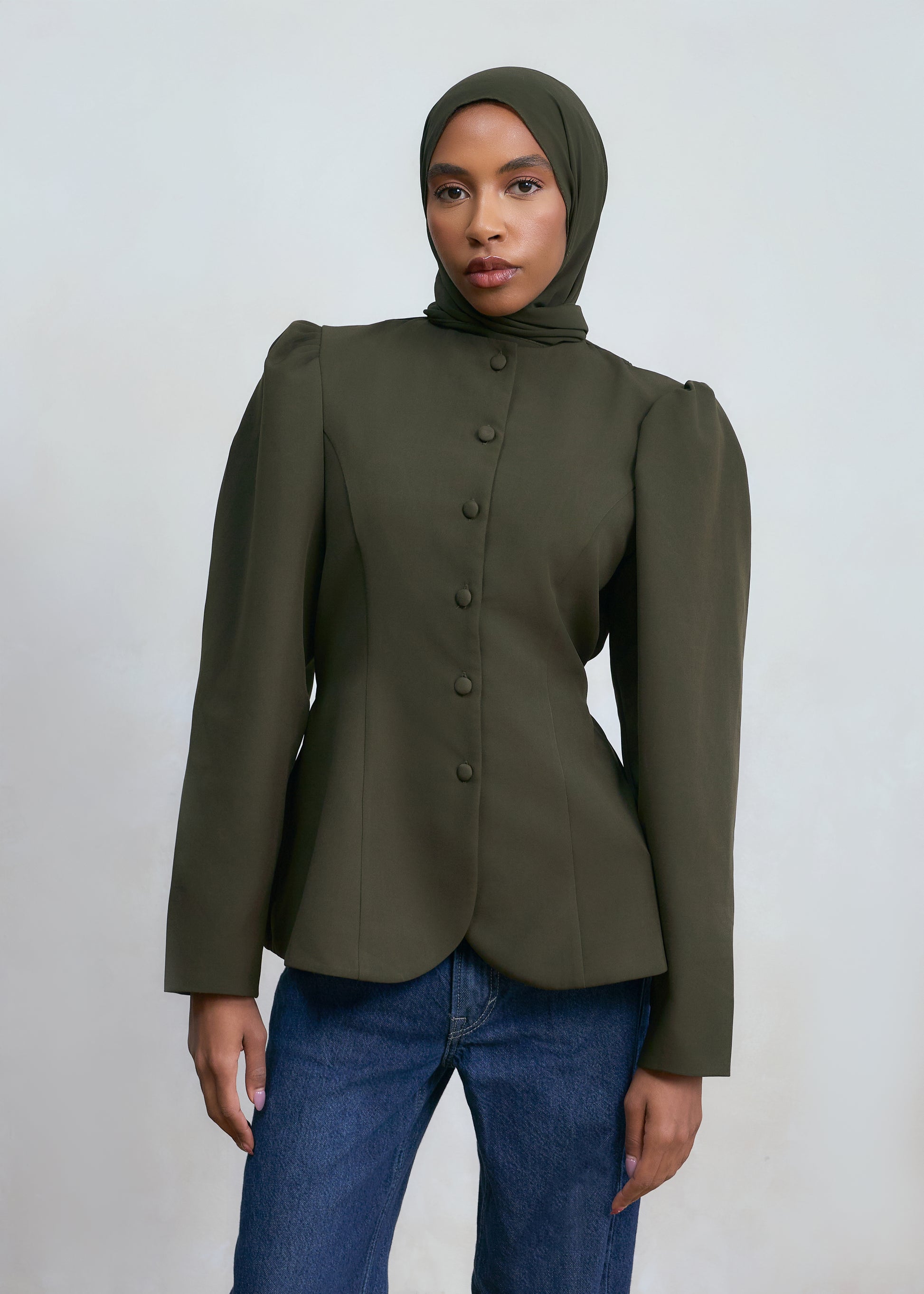 The Uptown Top is made in our Dhaka Atelier from 100% deadstock fabric.This top brings a sharp yet feminine edge to your office wardrobe. The cinched back creates an elegant silhouette that elevates every workday look